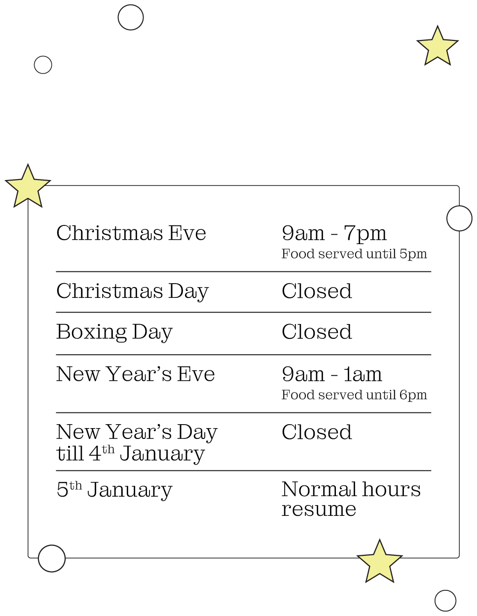 Test your festive knowledge with our Big Fat Christmas Quiz – a night of trivia, laughs and prizes. Teams maximum of 6 people