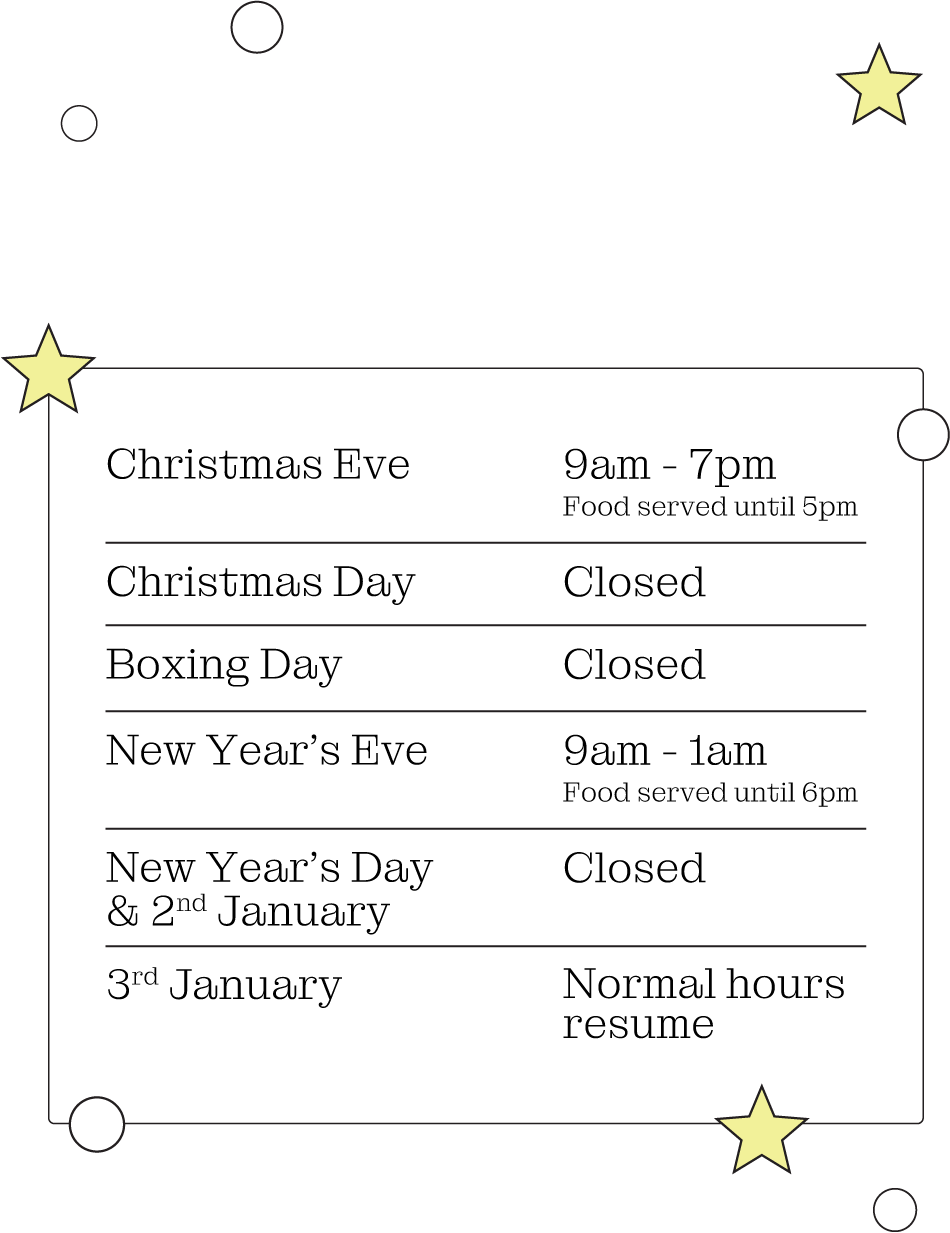 Test your festive knowledge with our Big Fat Christmas Quiz – a night of trivia, laughs and prizes. Teams maximum of 6 people